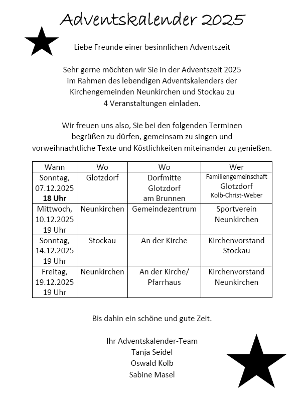 Evang.-Luth. Kirchengemeinden Weidenberg, Neunkirchen a.M., Stockau