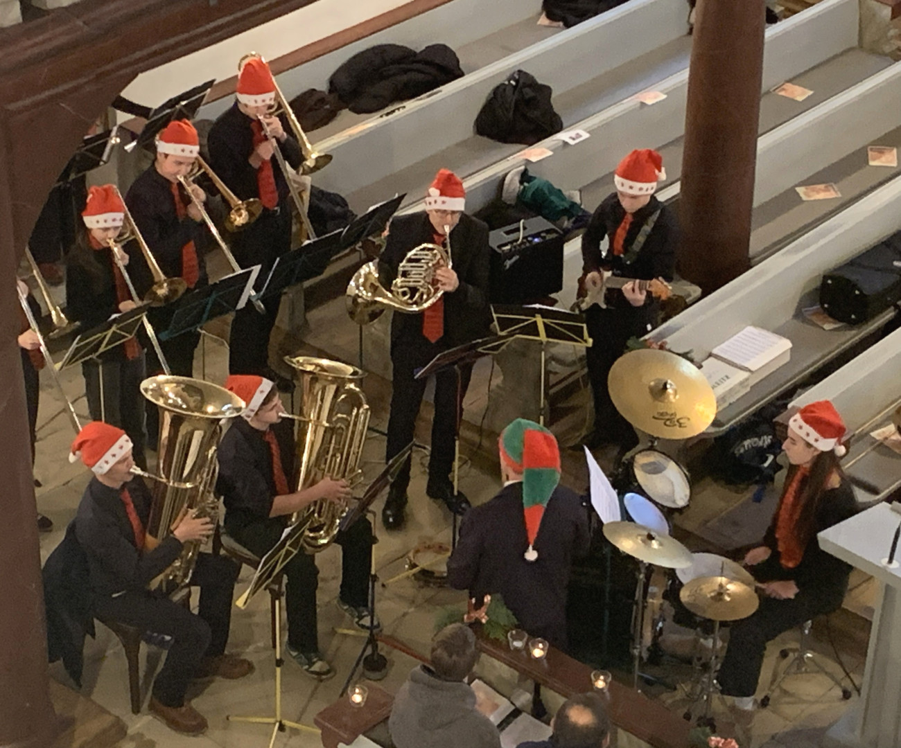Tatkräftig unterstützt wurden die Sänger und Sängerinnen vom MWG Blechbläserensemble unter der Leitung von Klaus Hammer. Die Stimmung in der vollbesetzten Kirche blieb aufmerksam und ganz dem musikalischen Geschehen zugewandt. So gelang es, den Trubel des Andreasmarktes am Rathausplatz für eine Stunde draußen zu lassen.
