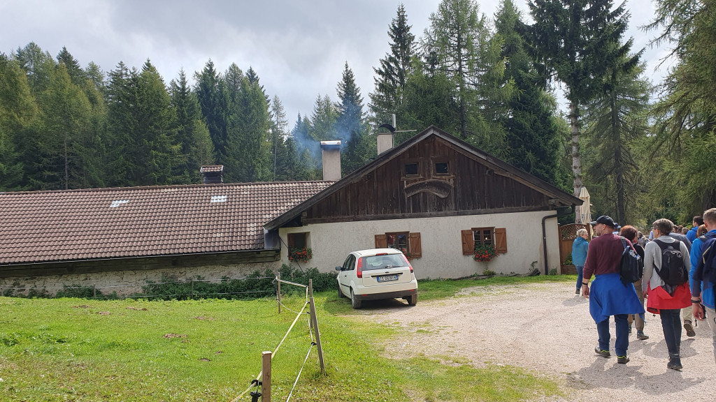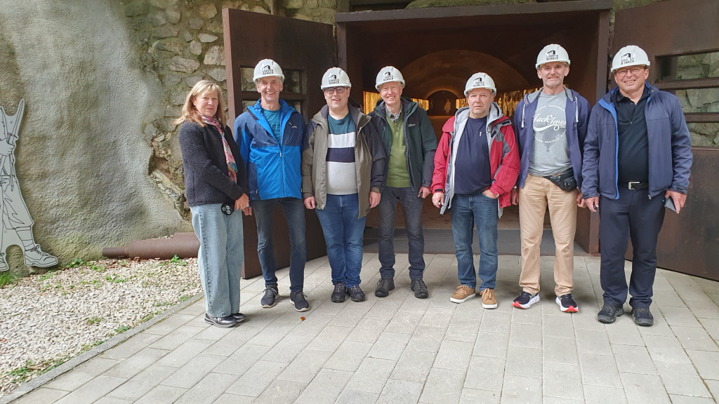 Freitag, 2. Tag: Vormittags fuhr ein Großteil der Gruppe mit dem Bus nach Fondo, um dort eine bekannte Käserei zu besichtigen, während eine kleine Männergruppe sich zu Fuß hinauf zum Gampenpass aufmachte, um dort das „Gampenmuseum“, das im Gampenbunker untergebracht ist, zu besichtigen. Ich denke, beide Gruppen kamen auf ihre Kosten. Mit Einheimischen als Führer/in macht das sowieso einen Heidenspaß. Wobei es da auch eine Verbindung zwischen Käse und Bunker gibt, denn der Käsehersteller lagert zum Schluss den Käse 2-3 Monate in diesem Bunker zur letzten Reife ein, um ihn dann in den Verkauf zu bringen. Der Bunker, mehrere Kilometer lang und bis zu 86 Meter in die Tiefe gehend, beherbergt auch ein großes Gesteinsmuseum, und es finden dort unten sogar Musikvorstellungen statt. Begrenzt allerdings auf max. eine 3/4-Stunde. Sonst wird es zu kalt für Menschen und Musikinstrumente.
