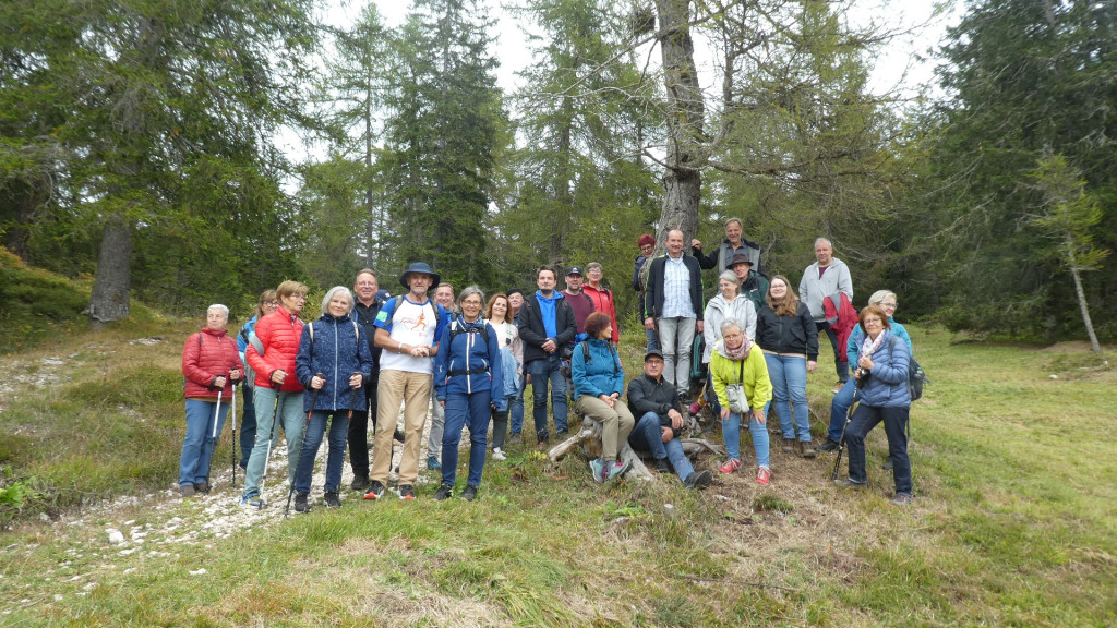 Samstag, 3. Tag: Nach dem Frühstück fand ein Standkonzert von unseren Chor- und Posaunenleuten statt, das witterungsbedingt in die Kirche verlegt wurde. Leider war das Konzert im Vorfeld nicht bekannt gemacht worden, so dass neben einer Handvoll Gottesdienstbesucherinnen ausschließlich unsere mitgereisten Fans begeisterte Zuhörer waren. Danach hatte uns die Bürgermeisterin zur Wanderung und Einkehr auf die „Felixer Alm“ in ca. 1.640 Meter Höhe eingeladen. Die Felixer Alm liegt in einem Naturschutzgebiet. Hier gibt es Bären, Rotwild und natürlich viele Kühe. Bis vor kurzem auch Wölfe, die sind aber nur durchgezogen. Auch der Ötzi wurde gar nicht so weit weg gefunden. Für Leute, die nicht so gut zu Fuß waren, fuhr ein kleiner Bus der Feuerwehr, der Fahrer war übrigens der Sohn der Bürgermeisterin. Alle anderen stiegen zu Fuß hinauf. Oben hatten wir einen wahrhaft tollen Empfang mit Essen und Trinken, es wurde das Tirolerlied gesungen und Geschenke überreicht. Wir hatten u.a. gesammelt und spendeten den Betrag dem dortigen Kindergarten, der sich sehr gefreut hat. Zurück ging es dann über den „Felixer Weiher“, der trotz Naturschutz als Badesee genutzt wird. Hier gibt es auch noch den Brauch des „Eisbadens“ für die ganz Harten. Über verschiedene Wege wanderten wir dann zurück ins Tal zum Bus, der uns wieder sicher ins Hotel zum Abendessen brachte. Hier saßen wir mit Bürgermeisterin und einigen Leuten der Gemeinde zum Abschied noch lange zusammen.