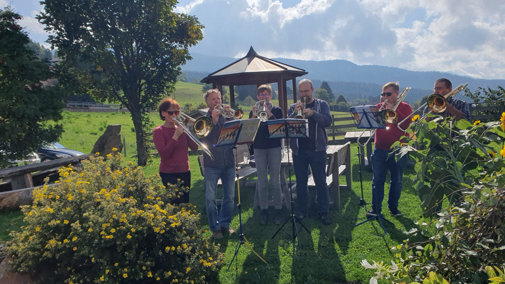 Sonntag, 4. Tag: Frühstück und Gepäckverladung erfolgte schon sehr früh, denn wir fuhren nach St. Felix, wo wir in der dortigen Kirche den Gottesdienst um 9 Uhr mitfeierten, der von Kantorei und Posaunenchor mitgestaltet wurde. Zu unserer Überraschung ging es vor unserer Heimfahrt noch zum „Reinhof“, einem Bauernhof mit Ferienzimmern und Restaurant oberhalb von St. Felix in ca. 1.300 Meter Höhe. Hier hatte uns die Bürgermeisterin noch einen Abschiedsumtrunk vorbereitet. Die Bläser spielten noch ein Weilchen, und das Tirolerlied wurde zum Abschied gesungen, bevor es auf die lange Rückfahrt ging. Diese schafften wir ganz gut, sodass wir gegen 20 Uhr zuhause in Weidenberg ankamen.
