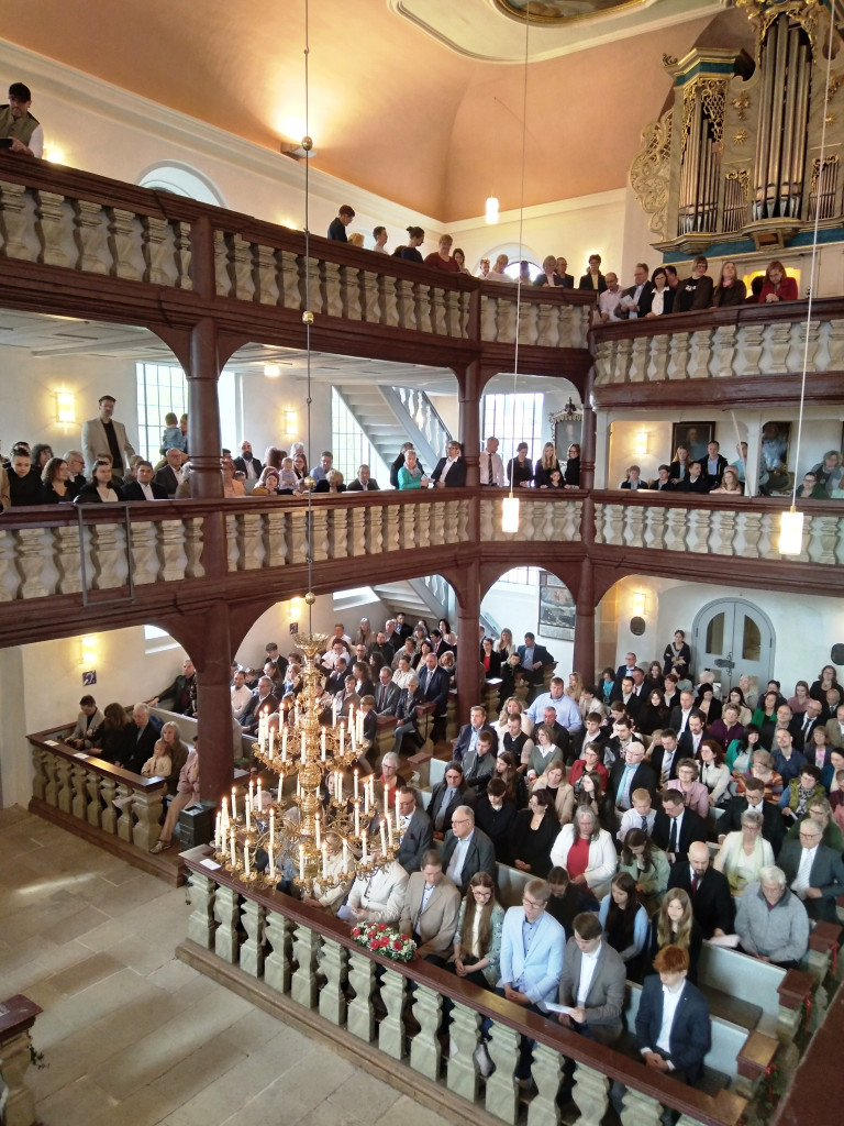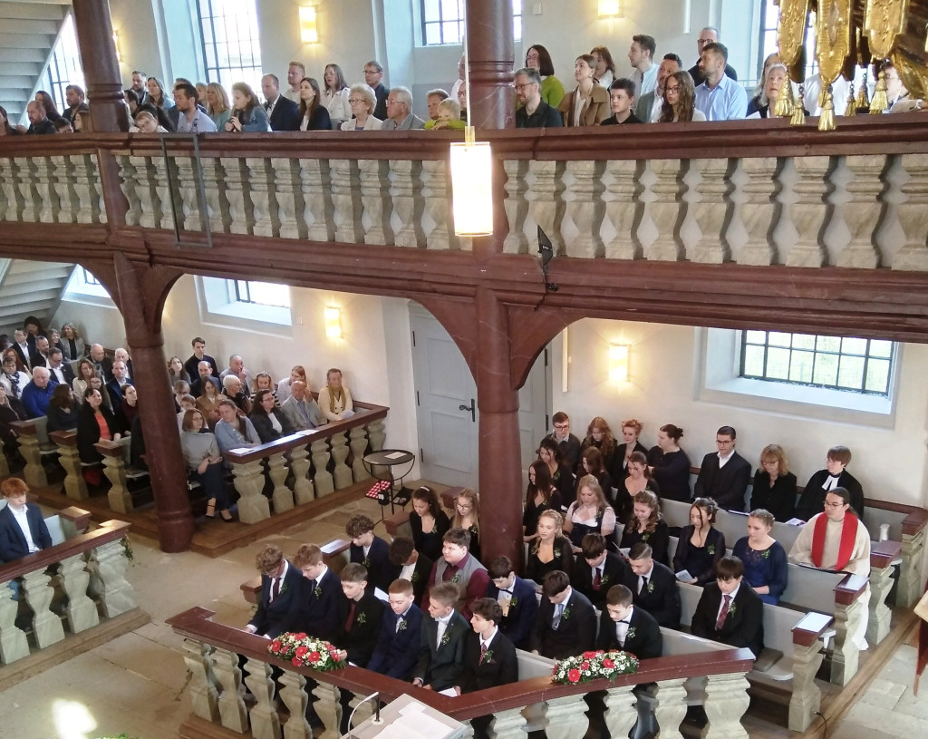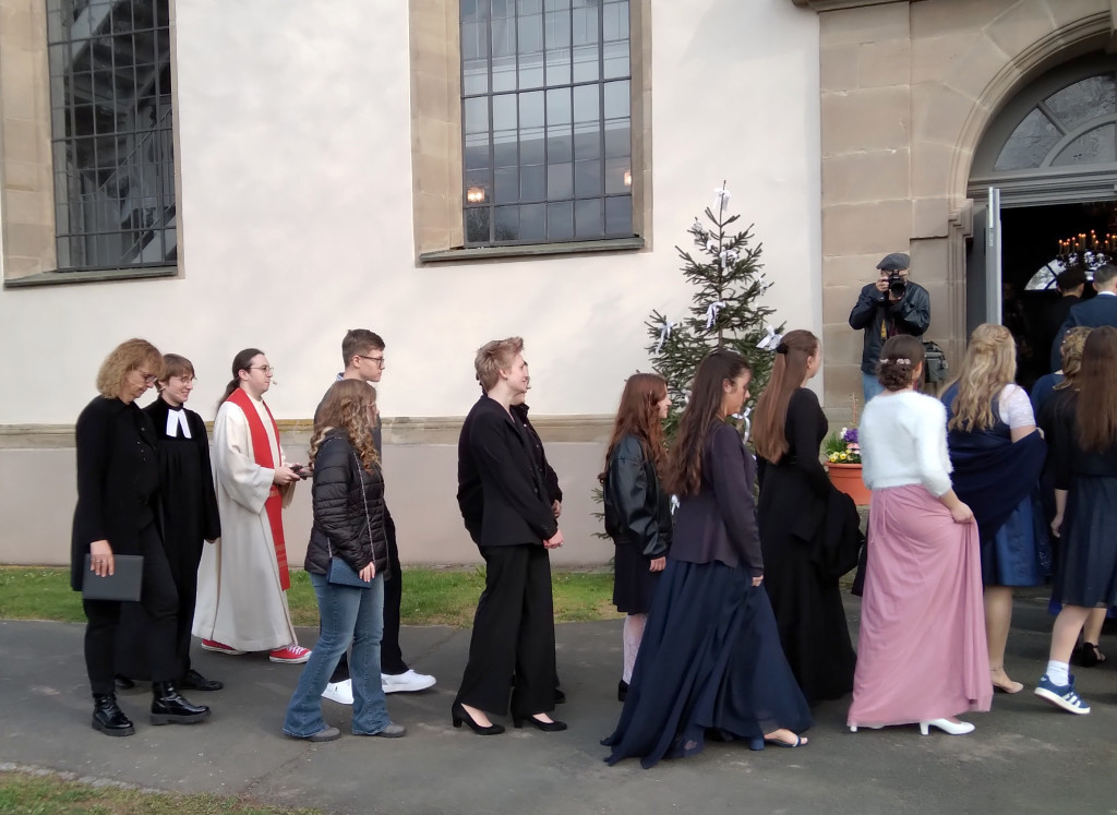 In der Markgrafenkirche St. Michael in Weidenberg wurden 27 Jugendliche in einem festlichen Gottesdienst konfirmiert. Mit flotten Klängen geleitete der Posaunenchor die Gruppe den Gurtstein hinauf zur Kirche. Vom Spiel der Orgel und dem Gesang der Kantorei unter der Leitung von Christine Hammer fühlten sich alle herzlich eingeladen zu diesem Festgottesdienst.